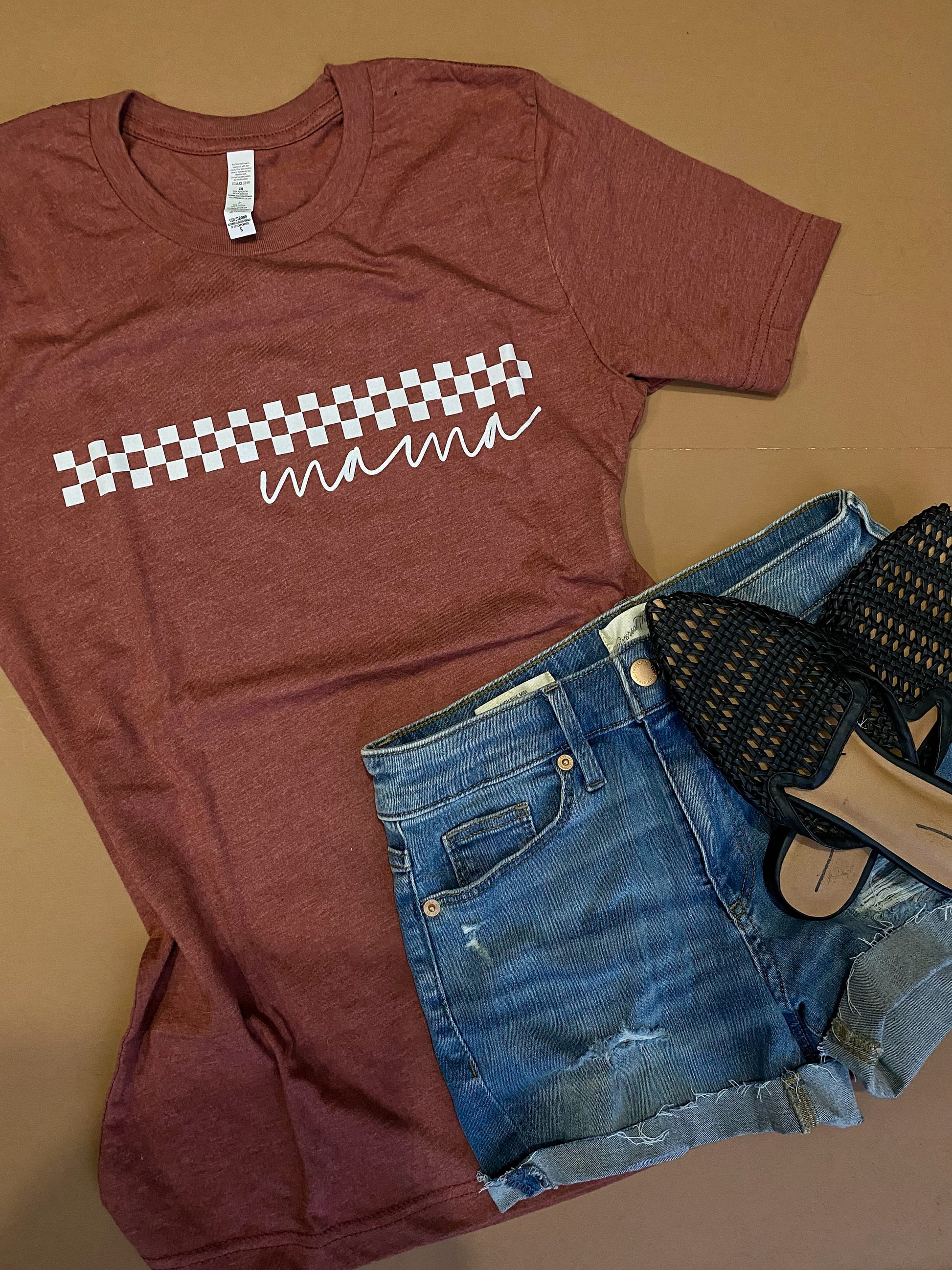 Checkered Mama - Rust tee