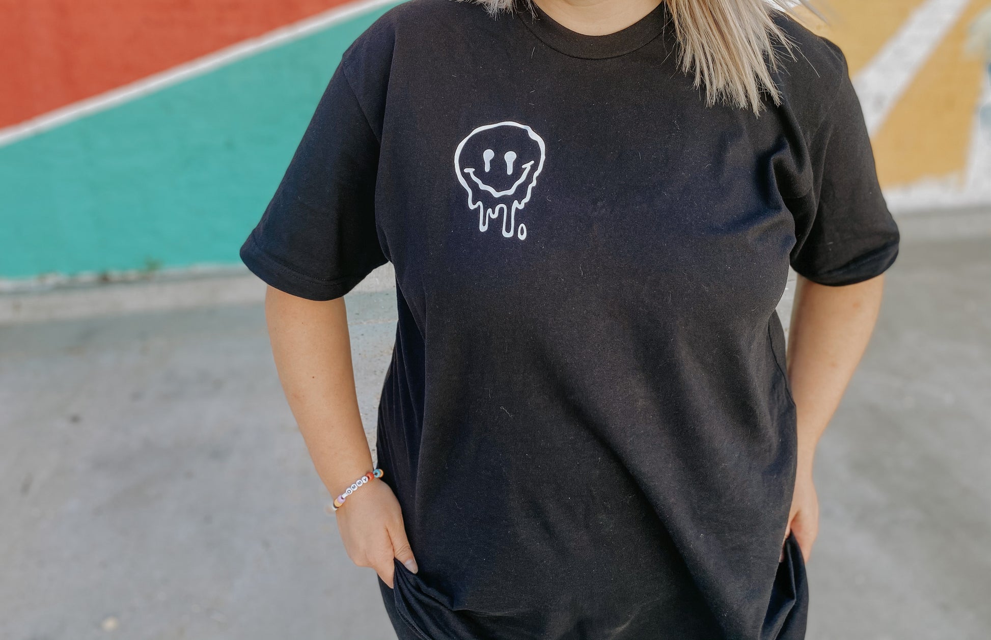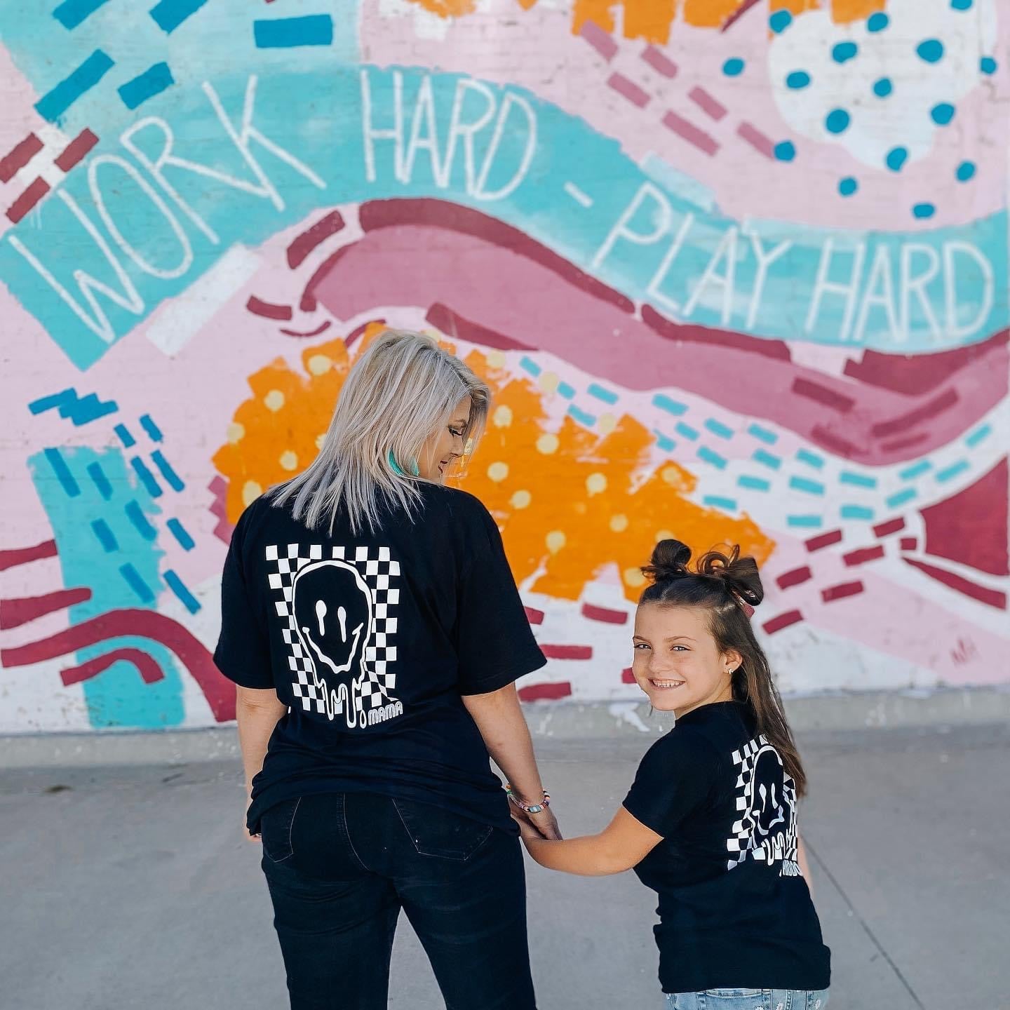 MAMA checkered smiley - black short sleeves