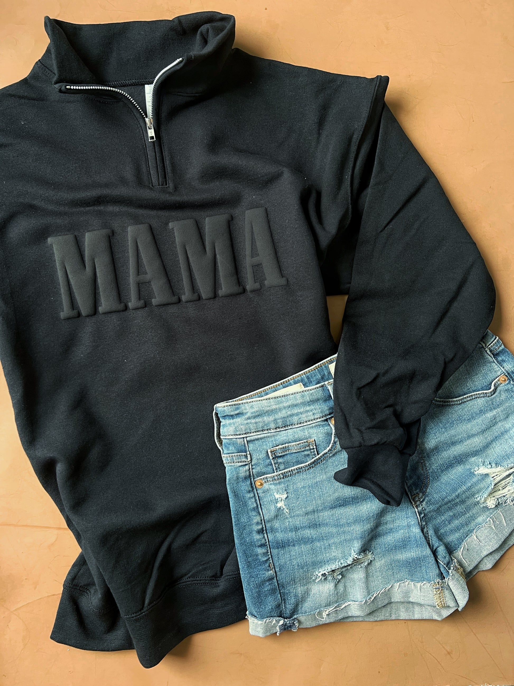 MAMA puff - Black on Black Pullover Quarter Zip