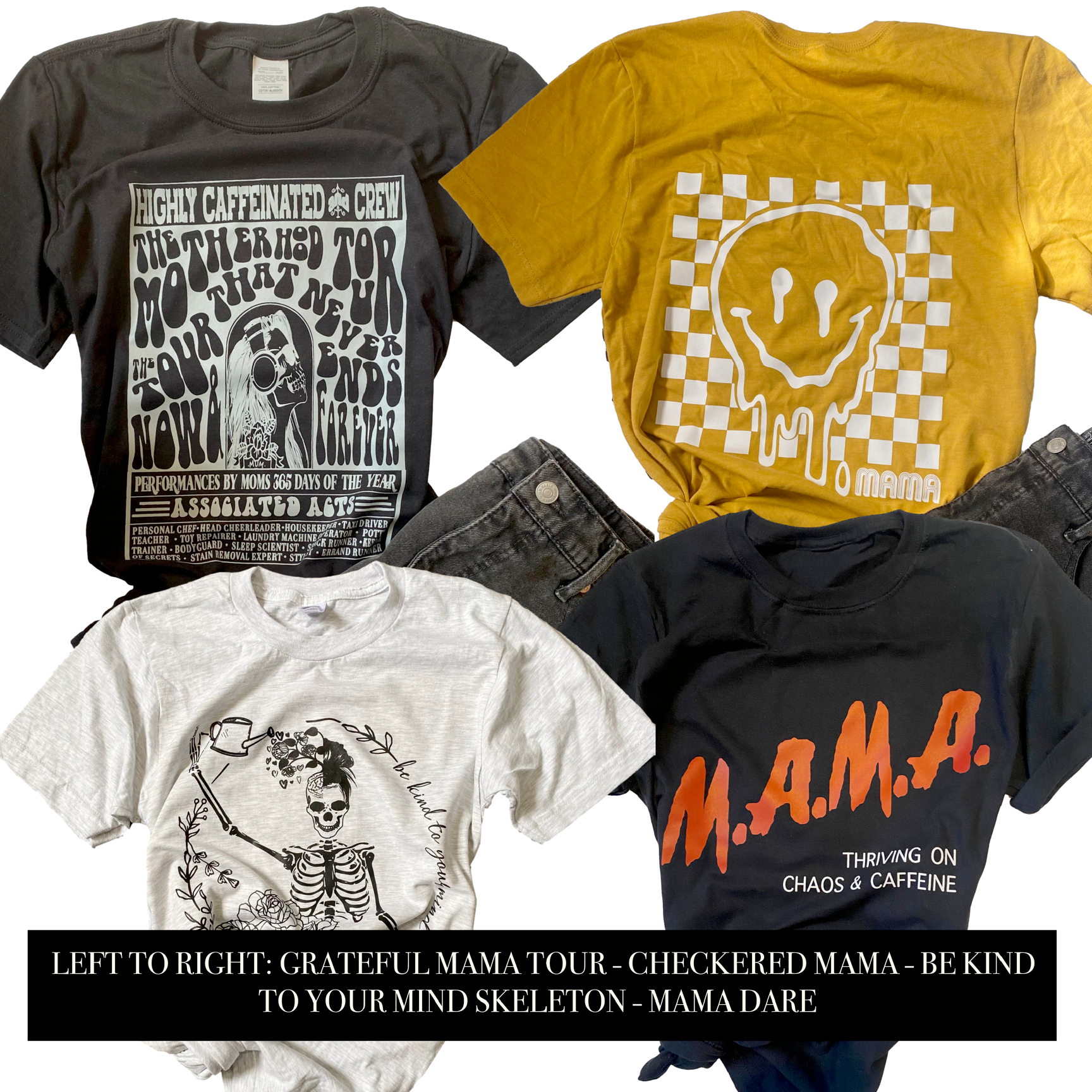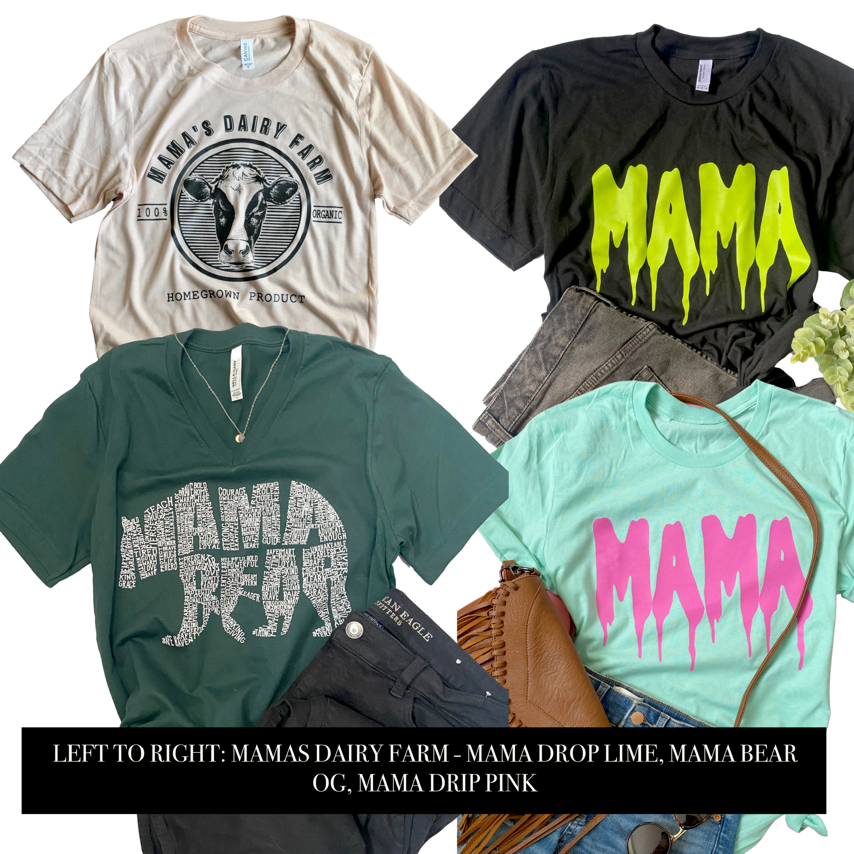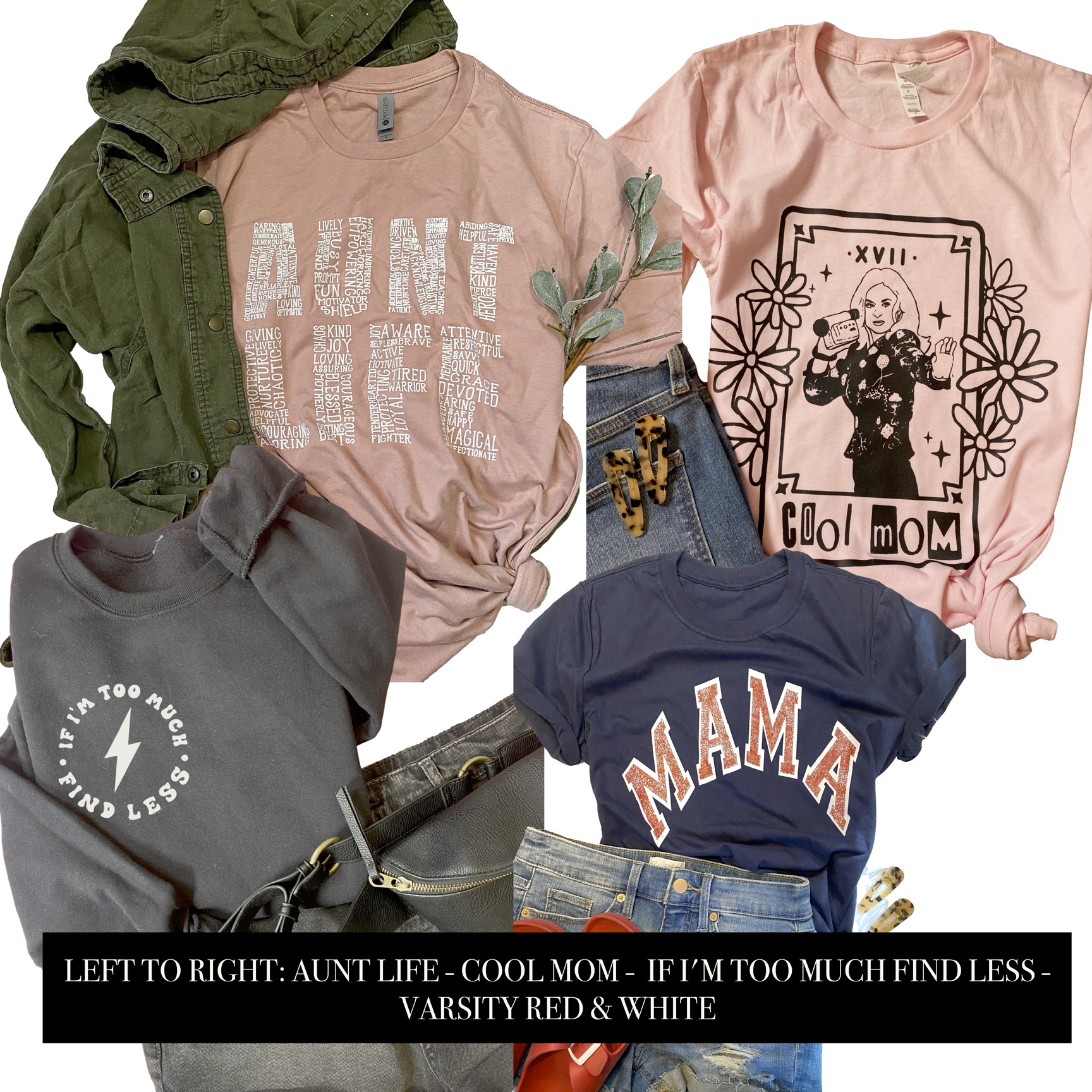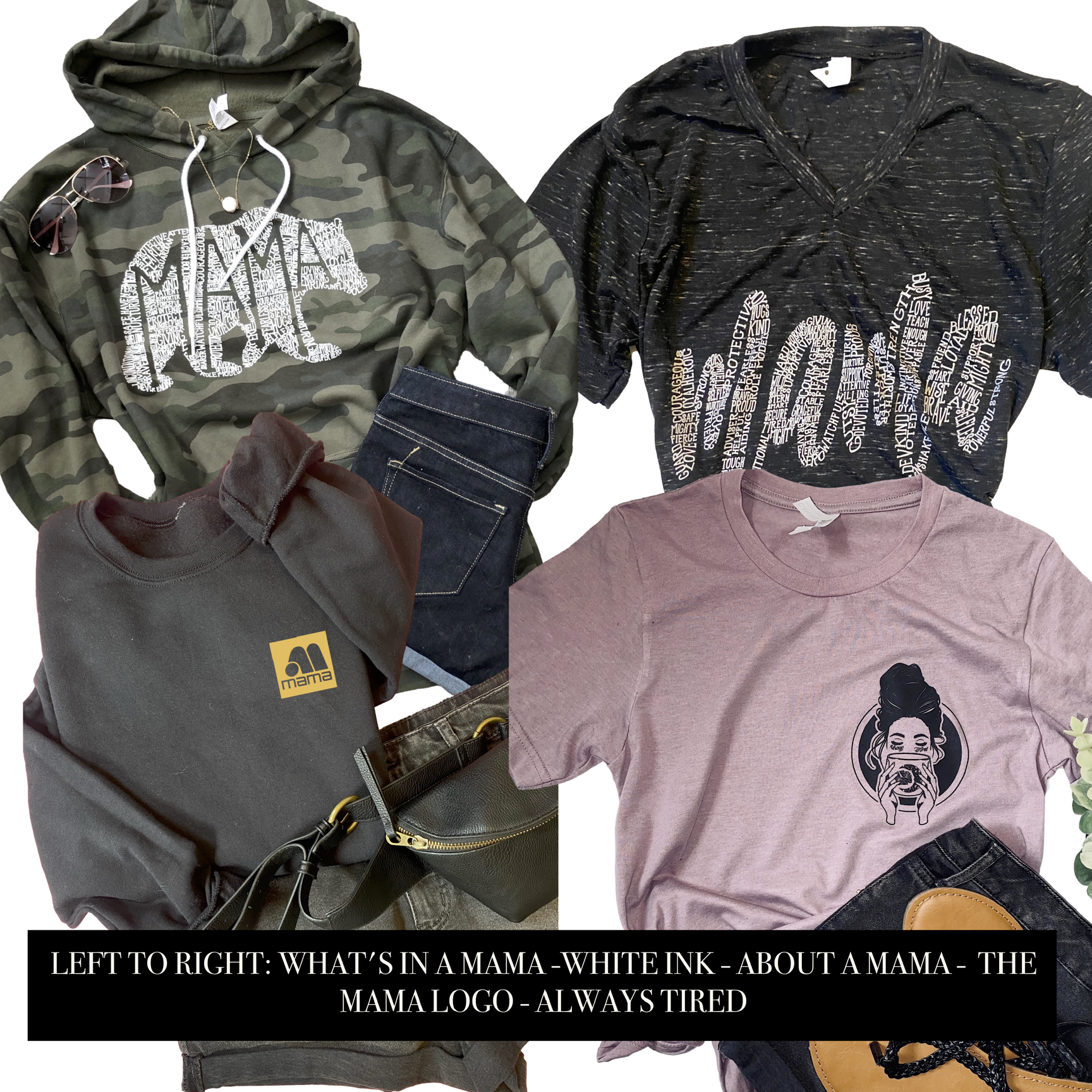 *Like our other mystery grab bags, these will NOT be items on the website to prevent duplicates - so if you're looking for example a camo What's in a Mama hoodie in your grab bag - it will not be in this. You will need to purchase that item directly. Due to the completely custom nature of these, these items are FINAL SALE.